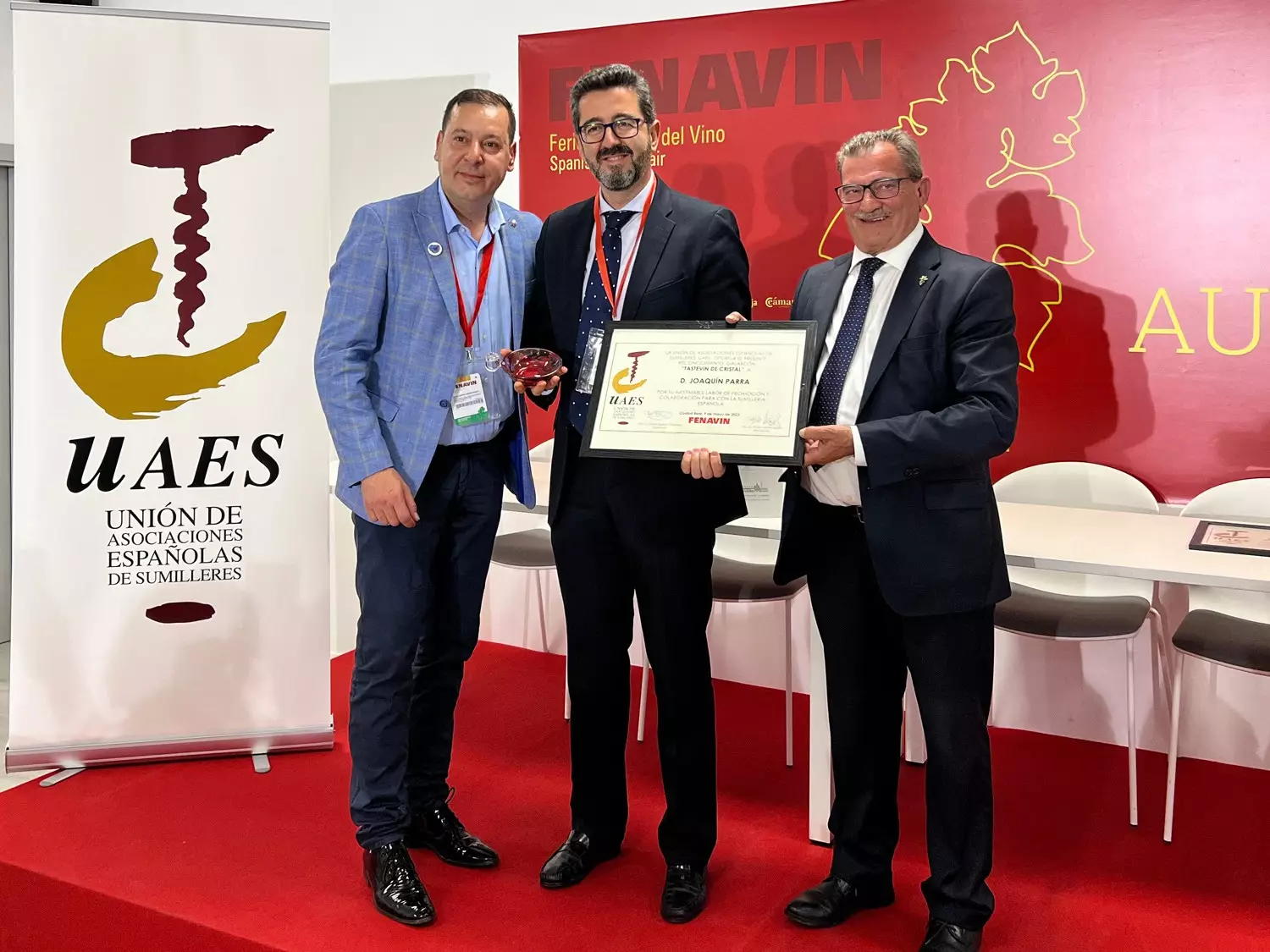 En el marco de FENAVIN 2023, se entregaron los premios Tastevin de Cristal, el máximo galardón otorgado por la UAES (Unión de Asociaciones Españolas de Sumilleres), que reconocen la excelencia en el mundo del vino. Joaquín Parra, reconocido sumiller y director de Wine Up Consulting, tuvo el honor de recibir este prestigioso premio, convirtiéndose así en el primer comunicador en España en alcanzar tal reconocimiento. Parra fue honrado junto con Javier Pérez y José Manuel Caballero, quienes también recibieron este destacado premio.